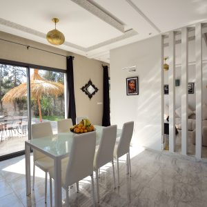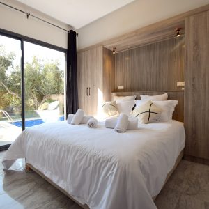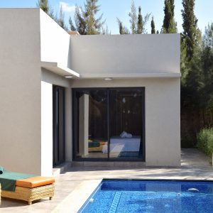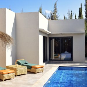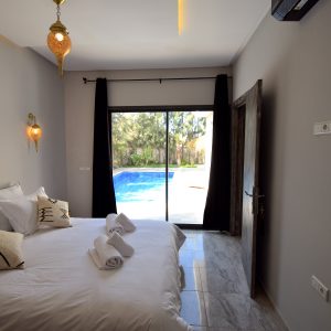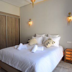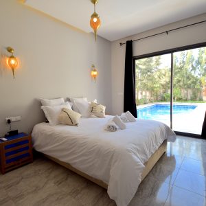 Cette villa neuve incarne l’élégance contemporaine, mêlant harmonieusement influences européennes et charme marocain. Elle dispose de trois chambres soigneusement aménagées, dotées de literie et linge haut de gamme, digne des plus beaux établissements hôteliers.