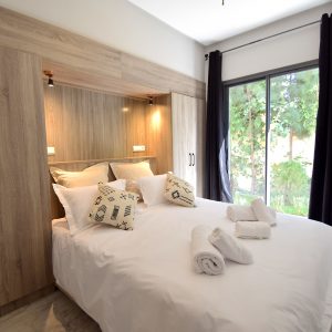 Le logement se compose de deux unités distinctes : une première petite maison abrite deux chambres confortables avec leurs salles d’eau privatives. La seconde maison réunit un salon lumineux avec une cuisine entièrement équipée et un coin chambre avec lit double et sa salle d’eau. Toutes les pièces sont climatisées.