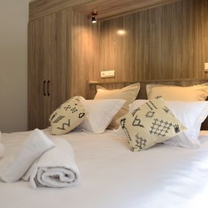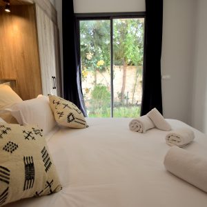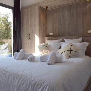 La maison dispose de trois chambres élégantes et deux salles d’eau modernes, pensées pour offrir confort et intimité. La literie hôtelière, les rangements discrets et les textiles choisis avec soin procurent une sensation immédiate de bien-être. Le salon chaleureux s’ouvre sur l’extérieur, invitant à profiter pleinement de la lumière omniprésente.
