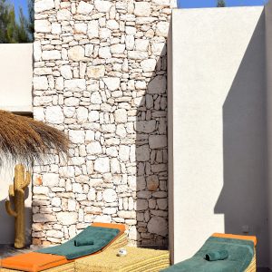 Nichée dans un domaine privé et sécurisé, la Villa Kara Silmi incarne l’art de vivre entre raffinement et authenticité. Cette maison de caractère allie l’élégance d’une architecture sobre à la chaleur des matériaux naturels : murs en pierre, enduits à la chaux, suspensions artisanales, mobilier bois soigneusement choisi… Chaque espace reflète une atmosphère apaisante, idéale pour se ressourcer en toute intimité.