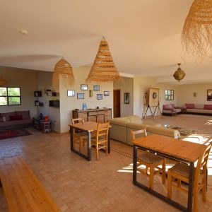 Villa Tassourt Lodge est située à seulement 20 minutes d’Essaouira, dans un environnement calme et naturel, idéal pour les séjours en famille ou entre amis. La villa peut accueillir jusqu’à 19 voyageurs, grâce à ses 7 chambres confortables. Vous profiterez d’une piscine, d’un hammam, d’un espace loisirs avec jeu de fléchettes, ainsi que de beaux espaces de vie conviviaux. Cuisine possible sur demande. Un lieu parfait pour se retrouver, se détendre et profiter de la région en toute tranquillité.
