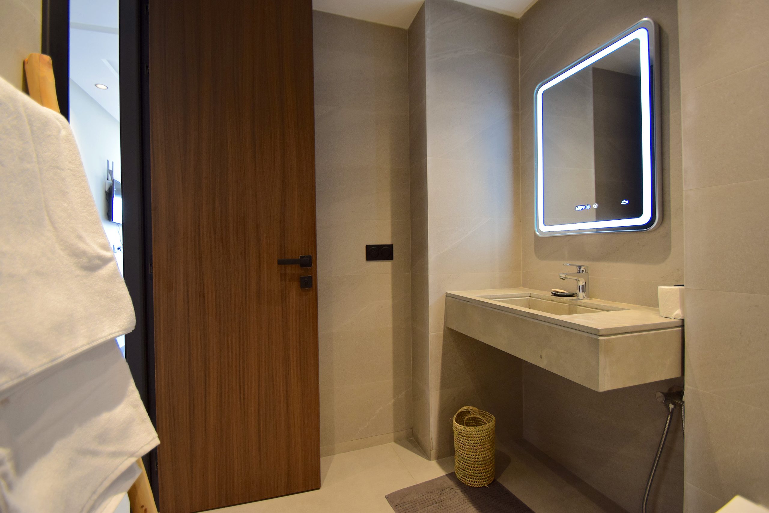– 2 salles de bain modernes avec douche à l’italienne et miroirs LED